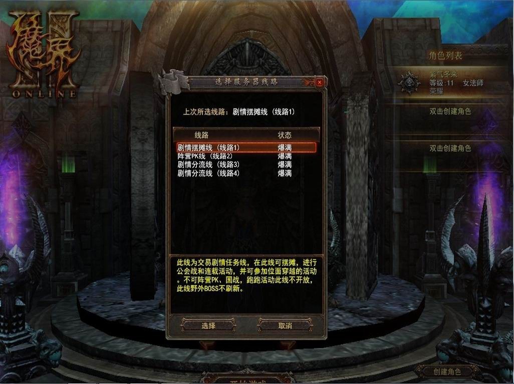 接着会有一个选择分线步骤,冬来感觉蛮不错的,把爱打架和爱做任,活动的人都分开了,不喜欢PK的朋友们可以不受打扰了。