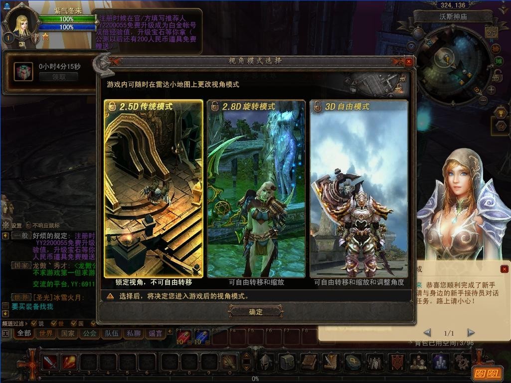 进行几个任务就会有多视角选择的提示,可以在2.5D、2.8D、3D 之间自由切换。
