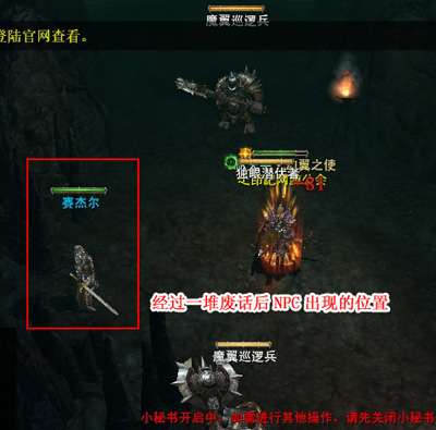 3、清除第一拨怪,其中“魔翼队长”和“赛杰尔”无法打死的,会罗嗦一堆话,然后消失。