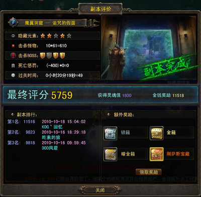 11、速度去击杀4号BOSS,领取副本奖励(出现第一个出副本的传送门),刚萨斯爆暗金装备
