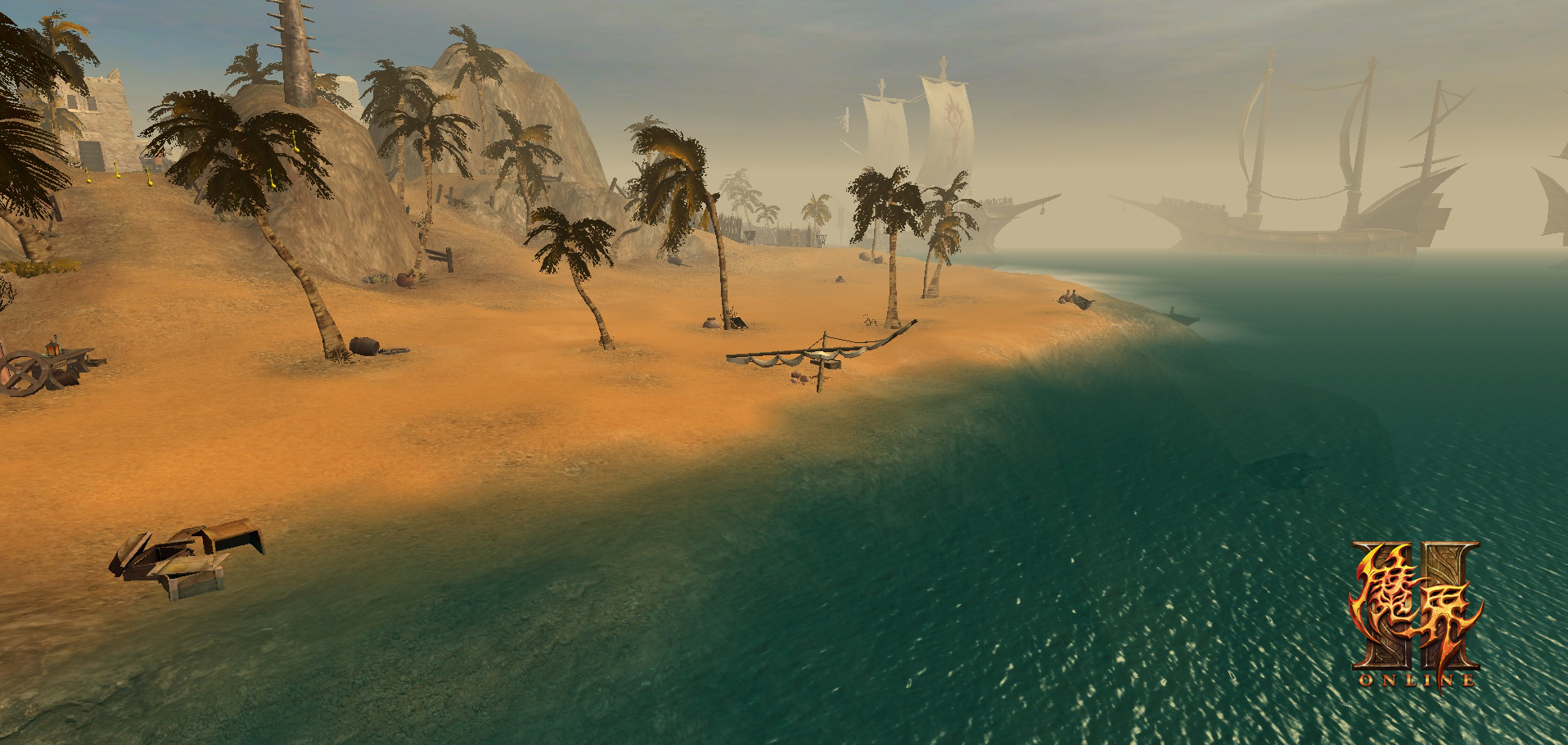 浅浅的沙滩、挺拔的椰子树、涌现的浪花不断拍打着沙滩,远处隐约浮现的船只,典型的热带风情构成了《魔界2》这块神魔大陆上最独特的风景——好望角。