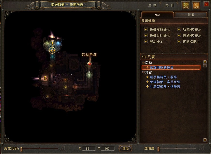 玩家在特权网吧登陆后,创建角色进入游戏,打开游戏地图,根据地图列表寻找到网吧管理员NPC。