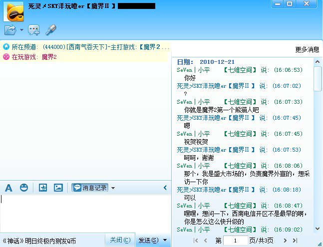 魔界2市场工作人员和“洋玩噫er”的YY聊天记录